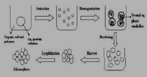 The double emulsion technique, commonly known as the water-in-oil-in-water (W/O/W) method, is especially useful for hydrophilic drugs. Initially, the aqueous drug solution is emulsified into an oil phase containing the polymer to form a primary W/O emulsion using homogenization.