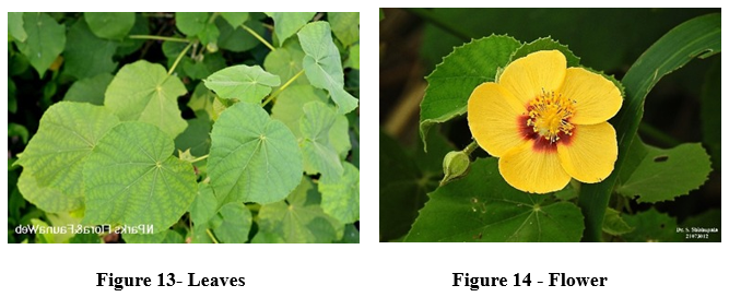 Figure 12,13,14: Whole plant, leaves and flower of Abutilon indicum