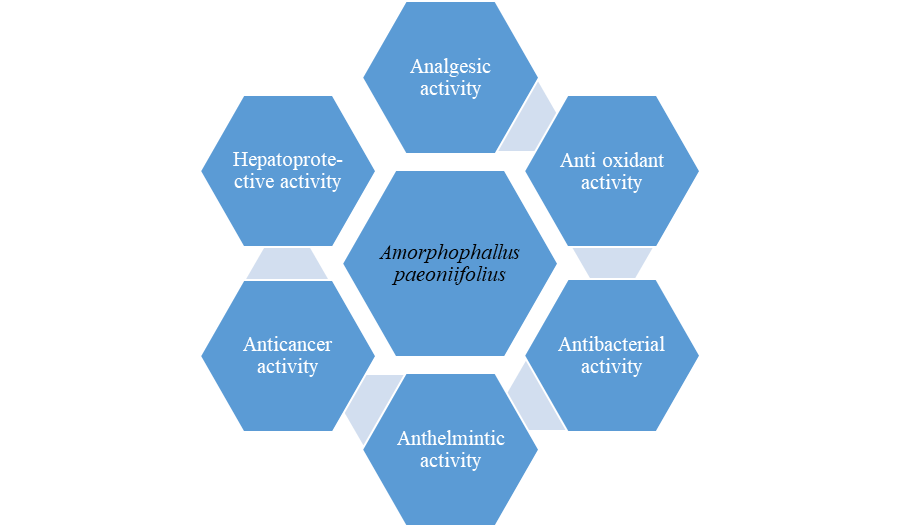 The phytochemical constituents of the plant contain alkaloid, flavonoid, steroid, tannin, carbohydrate, reducing sugar, amino acids, glycosides, saponins, phenols, glucomannans13,14.