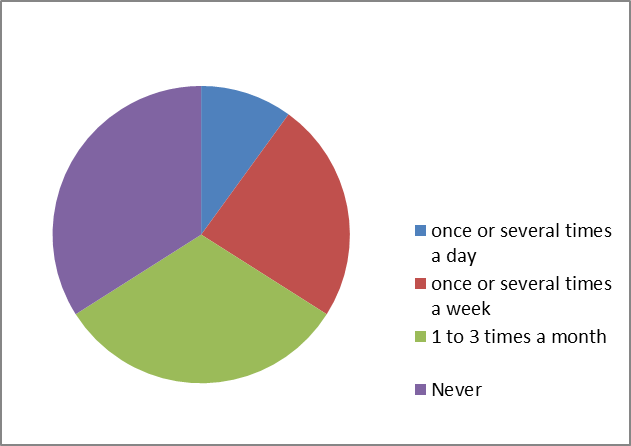 Fig. 2. Freguency of energy drink intake among individuals aged 13 to 19 residing in a Polish province. The survey was carried out by Zylka and Ocieczek, involving a total of 709 respondents.