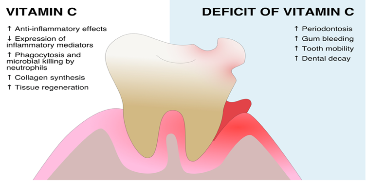 Not getting enough vitamin C weakens the gums and makes them more likely to bleed and get infected (Nishida et al., 2000).