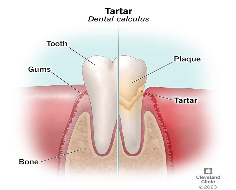 Dental plaque is a sticky film of germs on the teeth that starts periodontal disease. If it isn’t cleaned off regularly, it hardens into tartar, which keeps bacteria in place and continues to cause inflammation (Lindhe et al., 2015