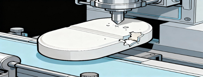 Chipping is a tablet manufacturing defect characterized by the breaking or removal of small pieces from the edges of the tablet. This damage often occurs during the tablet’s ejection from the press or during subsequent processes such as coating and handling.