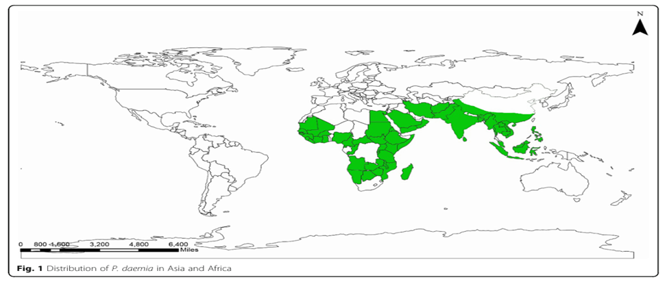 Fig.1. Pergularia daemia linn Distribution in Asia and Africa [13].