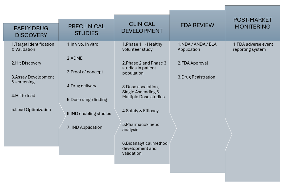 Figure 05: The six steps of new drug development towards FDA approval [14]