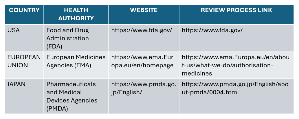 Table 01: Regulatory Bodies involved in NDA Approvals [9]