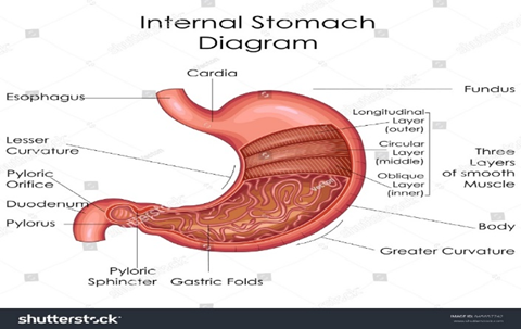 An organ's structure mostly determines the role it serves in the body, as is the case with the majority of physiological processes. The purpose of the stomach wall is to help create a temporary acidic environment that facilitates the breakdown of food into chyme, a semisolid mixture. The fundus, cardia, body, and pylorus are the four parts of the stomach organ. The stomach's inner surface is rotated to give the gastric mucosa more surface area, which permits the stomach to expand as food is consumed. The mucosal layer, submucosa, muscularis externa, and adventitia/serosa are the four distinct tissue layers that make up the stomach wall. The lamina propria, a layer of connective tissue, the muscularis mucosa, and the surface epithelium are the three additional layers that make up the stomach mucosal layer. (6)