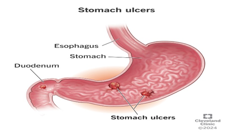 A peptic ulcer, also known as a stomach ulcer, is characterized by extensive damage to the mucosa or lining of the stomach and duodenum that goes beyond the muscular mucosa, notably to the muscle layer, due to the environment's generation of gastric acid. The two most frequent etiological antecedents are chronic Helicobacter pylori (H. pylori) infection and the use of nonsteroidal anti-inflammatory drugs (NSAIDs), which naturally include acetylsalicylic acid (ASA). Less than 5% of cases of peptic ulcer PU are caused by particular, uncommon, and carefully considered coupled antecedents. Among these is gastronomy, or Zollinger-Ellison syndrome (ZES). (1)