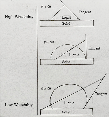 Fig.5: Schematic Representation showing effect of contact angle on Bioadhesion. 27