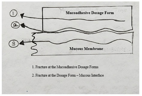 Fig.7: Possible sites of Mucoadhesive bond failure 29