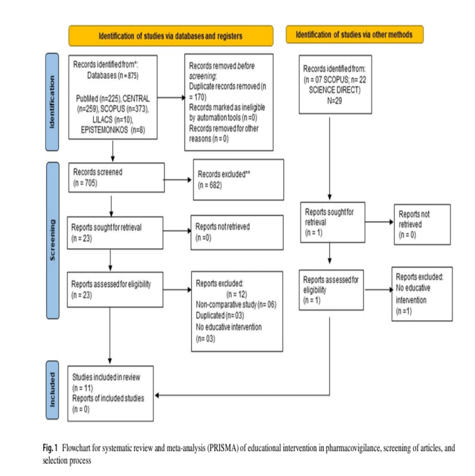 Purpose is to raise awareness about drug safety issues to improve ADR reporting to obtain statistical assessments by detecting signs and issuing health alerts 19-20. Therefore, the aim of this systematic review with meta-analyses was to synthesize the evidence of EI efficacy in health professionals to increase ADR reporting, attitudes, and knowledge of pharmacovigilance.