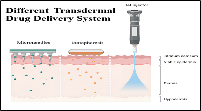 A transdermal drug delivery system (TDDS) is a method of delivering medication through the skin for systemic effects. It typically involves the use of patches that contain a specific dose of the drug, which is absorbed into the bloodstream via the skin. This approach allows for the controlled release of the drug over time, improving patient compliance and minimizing side effects compared to other routes of administration. Transdermal drug delivery systems (TDDS) offer an alternative to oral administration, providing sustained release of therapeutic agents and improving patient compliance.[1] TDDS is especially useful for patients unable to take oral medication, such as those experiencing vomiting or unconsciousness, and bypasses first-pass metabolism, reducing side effects associated with oral drugs.[2] However, TDDS efficacy depends on factors such as skin permeability, which varies among individuals, and the physicochemical properties of the drug.[3] While the market for TDDS is growing, challenges like skin irritation, variability in drug absorption, and optimizing drug delivery rates remain.[4] Adverse Despite progress, there is a gap in understanding how to enhance permeation while reducing adverse reactions. This review aims to explore the present scenario of TDDS, identify its advantages and disadvantages, and propose innovative strategies to optimize drug delivery, ensuring safety and improving clinical outcomes.
