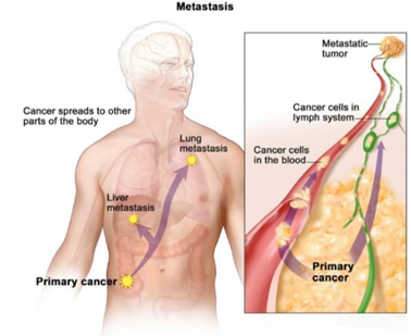 5. Metastasis -Cancer cells can break away from the primary tumor and travel through the blood or lymph system to form new tumor elsewhere.