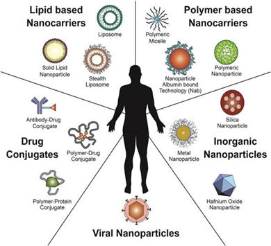 Nanoparticles (NPs) have revolutionized drug delivery with their small size, large surface area, and customizable surfaces and compared to traditional methods, they have improved the pharmacokinetics and distribution of therapeutic agents. The development of NPs for biomedical applications began in the 1960s with liposomes, which encapsulated hydrophilic and hydrophobic drugs. This advancement led to further innovations like polymeric NPs, dendrimers, and micelles, enhancing drug solubility, stability, and targeting9. Over the past few decades, research in cancer nanomedicine has achieved significant milestones. A variety of NPs, including lipid-based, polymeric, and inorganic NPs, have been developed for the targeted delivery of therapeutic nucleic acids, chemotherapeutic agents, and immunotherapeutic and have been evaluated in preclinical studies. Some of these nanomedicines have progressed to clinical trials.