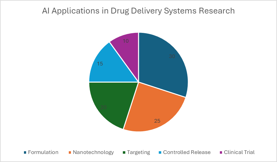 Artificial intelligence (AI) has emerged as a transformative technology in the design, optimization, and evaluation of drug delivery systems (DDS). Its applications span across formulation science, nanotechnology, targeted therapies, personalized medicine, and controlled release systems, each of which plays a critical role in modern therapeutics.