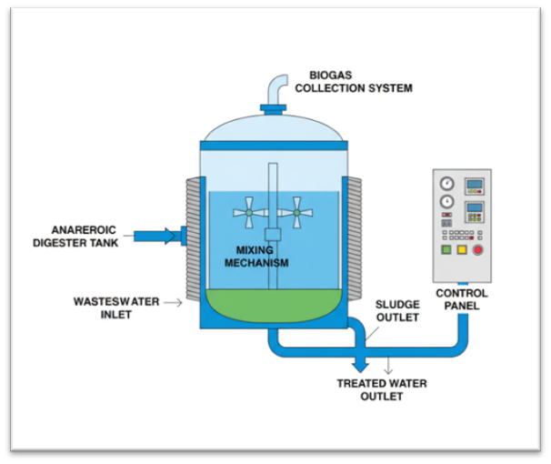 Anaerobic digestion requires several things to function effectively. The organic matter needs to be right. It should be rich in carbs, proteins, or fats. Chemical and physical conditions are also key. The pH should be about 6.5 to 7.5. Temperatures can be mesophilic (30–40°C) or thermophilic (50–60°C). The carbon-to-nitrogen ratio matters. Good buffering is also needed. Harmful things like ammonia and excess acids must be controlled. Mixing the contents is important. The time the material stays in the digester is also critical.(53)