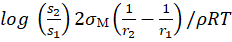 The process involves the interaction of two variables - drug solubility S1 and S2 alongside particle radii r1 and r2 - as well as surface tension between the liquid solvent and drug σ. This relationship exists with the help of two parameters, M and ρ. The calculation includes the relative molecular mass M together with the density ρ of solid drugs and the molar gas constant R, at temperature T. Small crystals demonstrate greater saturation solubility than large crystals because of their increased surface free energy, although both are immersed in the same solution. The contact between small and large crystals creates a dispersed mass transfer that permits the growth of bigger crystals while the smaller particles diminish into nothingness [8].