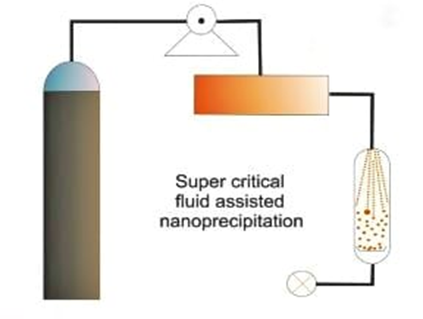This technique involves the growth of nanocrystals in solution. This precipitation process involves two crucial phases. The formation of new crystals is one, and the nucleation process is another. The nucleation process is extremely important in the case of nanocrystal precipitation because it is essential to produce very small and homogeneous nanocrystals. More nuclei are extracted from the supersaturated solution when the nucleation rate is high. Another factor contributing to the narrow particle size distribution of nanocrystals is the large number of nuclei that were obtained collectively during the nucleation step [26]. Methods like mixing with an antisolvent or removing the solvent can be used to activate the nucleation process. The usual mixing apparatus is either an agitator blade or a magnetic stirrer. As an alternative, current equipment uses impinging jet reactors, multiple inlet vortex mixers, static mixers, etc., to provide efficient mixing in milliseconds. Additionally, ultrasonication is available to generate cavitation forces and encourage nucleation. Techniques like freeze-drying or spray-drying are frequently employed to effectively dry the resulting nanocrystals [27]. The main advantages of this technique are that the equipment used is simple and easy to handle, and low-cost. Making use of static blenders, micromixers, etc., makes scaling up quite simple as well. The fact that the precipitation techniques are not universal in approach is their main drawback. Due to uncontrolled particle growth, these approaches are only successful for a small proportion of compounds; they cannot be used to process the majority of pharmaceuticals. Because of their particular benefits in terms of physical qualities, diffusivity characteristics as a gas, and solubilization behaviour as a liquid, supercritical fluids such as supercritical carbon dioxide can be employed to create nanocrystals. The major advantage of this technique is the immediate removal of these fluids without extra drying of nanocrystals [28].