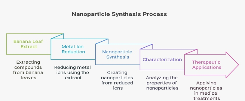 The banana leaf-mediated nanoparticles represent a rare intersection where traditional knowledge meets the edge-cutting nanotechnology, which is said to offer a sustainable and promising frontier in the management of diabetes. The phytochemical-rich coatings, versatile metal core and the eco-friendly synthesis of the nanoparticles enable the antioxidant, anti-inflammatory and the insulin-sensitising actions that mostly the conventional therapies fail to provide. However, this study from the laboratory to the clinics demands rigorous exploration, standardisation, manufacturing, safety studies, toxicology studies and the careful formulation approach. By involving strategic research, ethical oversight and innovation, the banana leaf nanoparticle has the potential to transform a common agricultural byproduct into an accessible antidiabetic therapy. This article has provided a thorough view of the effective use of the banana leaf nanoparticle in the anti-diabetic action. These mostly challenge the existing conventional therapies that are said to have more side effects. This traditional incorporated method can be used to give a futuristic direction to the herbal industry, which is mainly known for its lack of side effects and long-term therapy. This emerging field stands poised to reshape both nanomedicine and sustainable healthcare for the future.