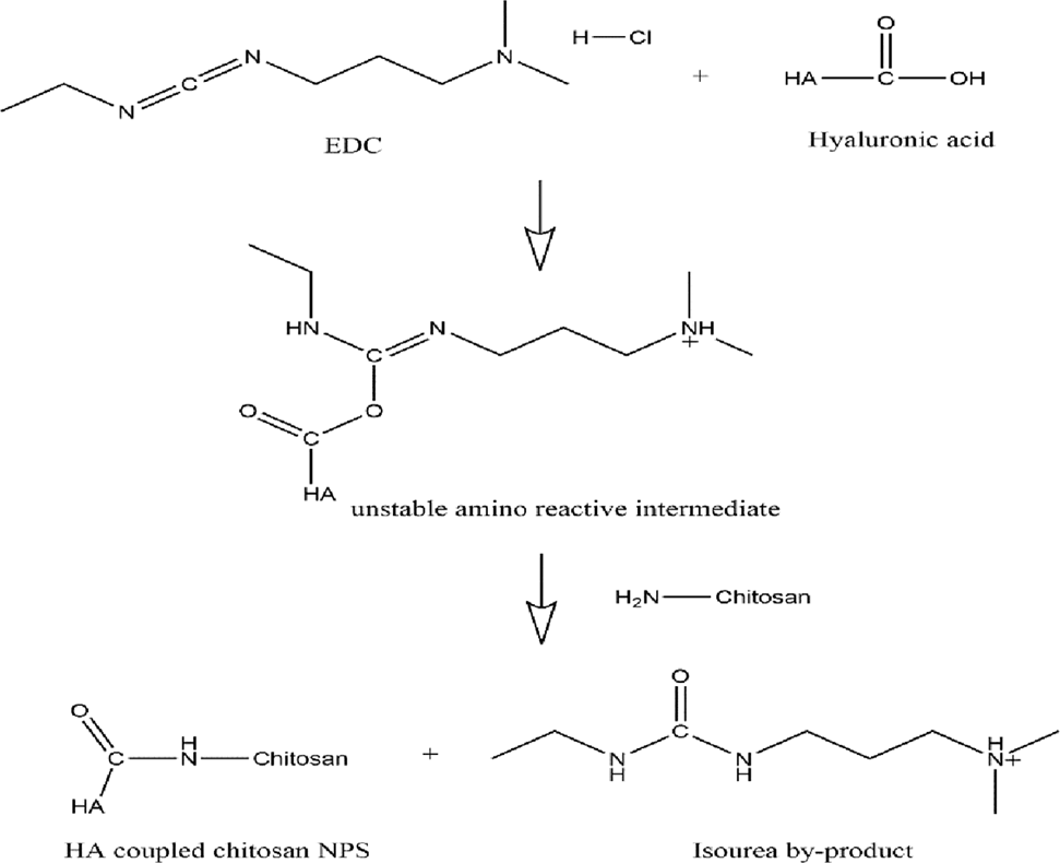 Scheme 1: Coupling of hyaluronic acid with chitosan nanoparticles.