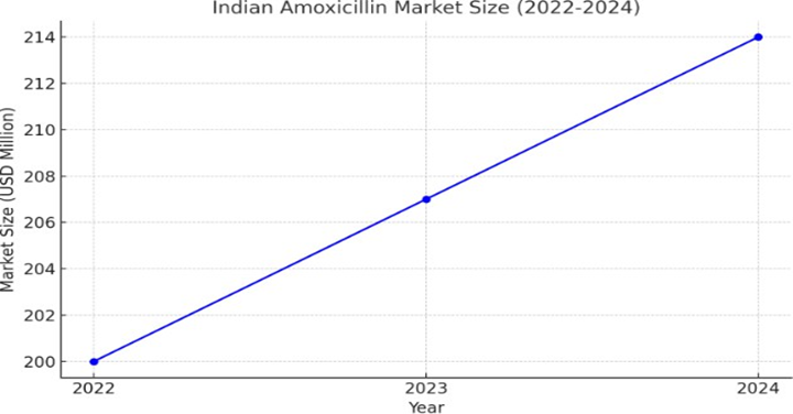 Here’s a clear chart showing the Indian Amoxicillin Market size from 2022 to 2024.