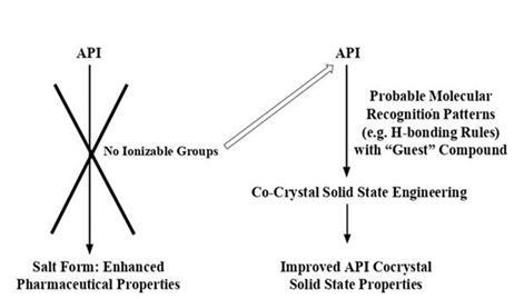 Etter was the first to report the term "co-crystal" and the design guidelines for hydrogen bonding in an organic co-crystal. The supra molecular synthon notion of hydrogen bond creation in crystal formations was initially introduced by Desi Raju. Depending on the kind of co-former, Duggirala and colleagues divided the co-crystals into molecular and ionic categories (1,4).