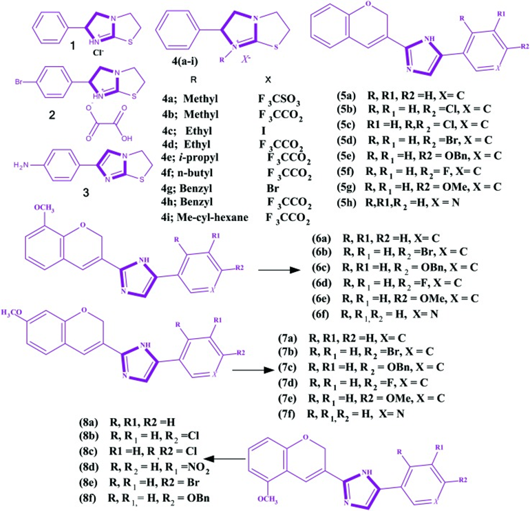 Angiogenesis is an essential process that involves migration growth and differentiation of vascular endothelial cells. The vascular endothelial growth factor (VEGF) is a major angiogenic factor produced by the tumor cells. The anti-angiogenic drugs act by targeting the VEGF and thereby destroying VEGF pathway and tumor vasculature. Hansen et al. worked on series of levamisole derivatives i.e., 1-4i for in vitro inhibition of angiogenesis. Gopinath et al. reported series of imidazoles 5a-8f, they were screened in vitro for inhibition of KRAS/Wnt and their anti-angiogenesis properties. [15]
