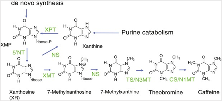 ?Caffeine is a purine derivative which contains imidazole ring. It is one of the main chemical constituents extracted from tea plants and coffee. [7]