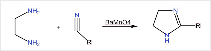 Dehydrogenation of Imidazoline: Barium manganate is a mild reagent which converts imidazolines into imidazole in the presence of Sulphur. Imidazolines obtained from 1,2 ethane diamine and alkyl nitriles are treated with BaMnO4 which yields 2-substituted imidazole. [11]