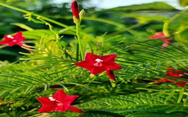 a) Synonyms: Ipomoea quamoclit, Quamoclit pennata, star glory, Indian pink, cardinal creeper, and hummingbird vine.