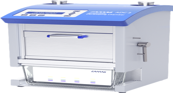 Usually, a rectangular glass chamber is used to develop HPTLC plates, similar to TLC. The chamber is saturated for about 20–30 minutes by adding the solvent and covering it properly. A filter paper soaked in the solvent system can also be placed inside to help the solvent vapors spread evenly. After saturation, the plate is placed vertically in the chamber, making sure that the sample spots remain above the solvent level. There are two main types of vertical developing chambers – the flat bottom chamber and the twin trough chamber, which has a divider at the base separating it into two parts. The twin trough chamber requires less solvent compared to the flat bottom one. Experts who use HPTLC also recommend using an Automatic Developing Chamber (ADC), where the plate is placed in a pre-saturated chamber, conditioned for a certain period, and then automatically dipped in the solvent. When the solvent front reaches the desired height, the plate is automatically removed. This automation avoids human interference, giving more accurate and reliable results.[15]