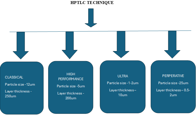 The interaction between the column and the target molecule is the stationary phase. The HPTLC plate set has smooth layers because the small particles are evenly distributed. The HPTLC plates are about 10x10 or 10x20 cm in size. In a typical TLC, silica gel and a less polar mobile phase. The majority of the compounds are subjected to analysis with methods like chloroform-methanol. Chemically modified lipophilic silica gel phases are combined with methanol-water and other more polar aqueous mobile phases in reversed-phase TLC. The detection's sensitivity and resolution are enhanced by these plates. In addition to the biochemical and clinical sciences, the pharmaceutical industry is beginning to use them for a number of quantitative drug analyses.
