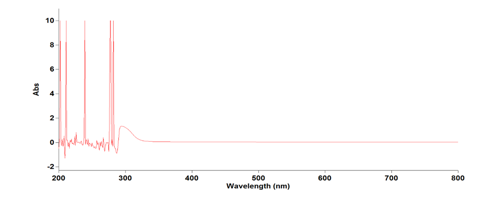 The UV response of the drug was determined by scanning at wavelengths ranging from 200 to 400nm in hydrotropic solvent (sodium benzoate) with a UV visible spectrophotometer. Aspirin was used for the spectroscopic studies since it had a maximum absorbance at 294nm.