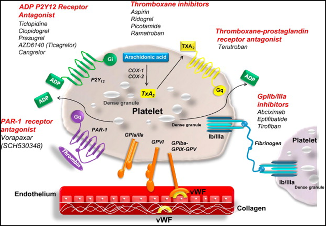 Patients with diverse atherosclerotic illnesses can be treated with aspirin, a currently available antiplatelet drug. It works by preventing the COX-1 enzyme from being activated, which prevents the formation of TxA2 from arachidonic acid. Aspirin has greater effectiveness in venous thrombosis than in the prevention of arterial thrombosis.7