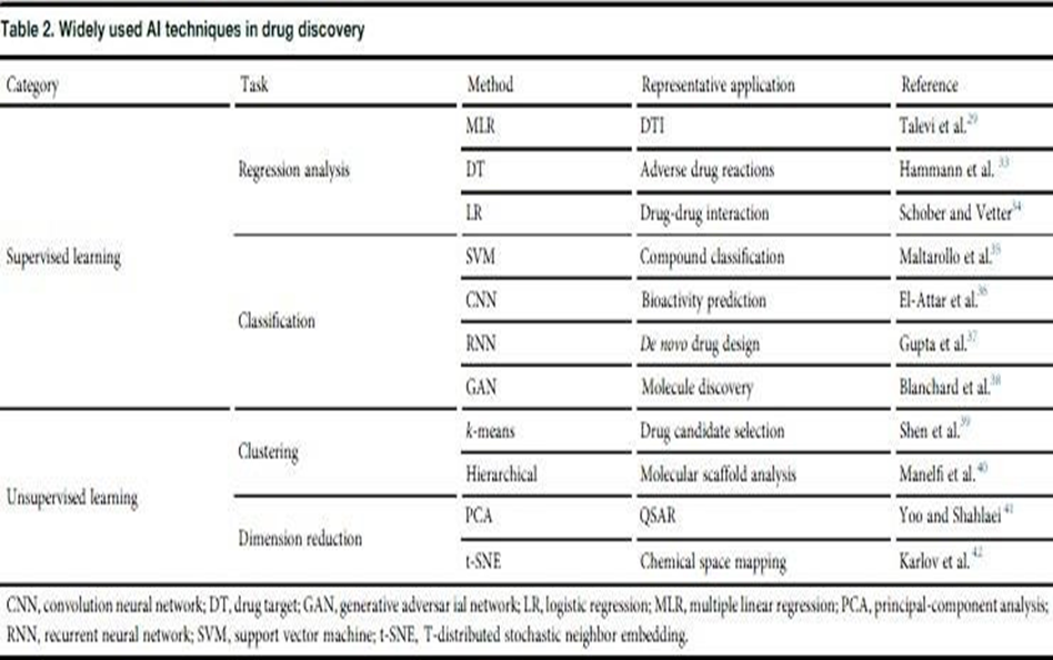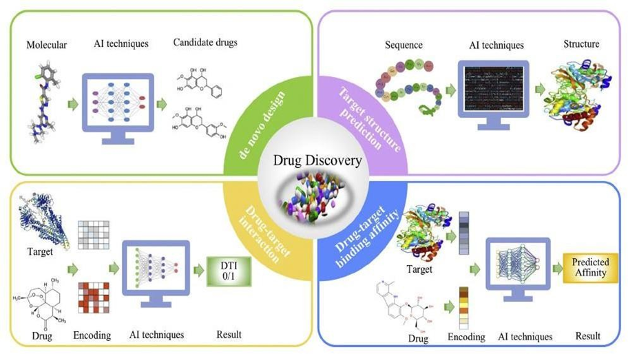 Figure 1: Framework of AI technique application to drug discovery and evaluation.