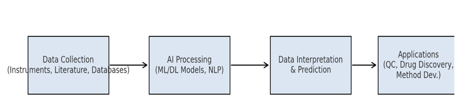 The integration of Artificial Intelligence (AI) into pharmaceutical analysis is transforming traditional approaches to drug development, testing, and quality assurance[6]. As the pharmaceutical industry continues to generate vast and complex datasets, there is an increasing need for intelligent systems capable of handling, interpreting, and acting on this information with speed and accuracy[7]. AI, particularly through machine learning and deep learning techniques, provides powerful tools to enhance analytical methods, optimize processes, and support data-driven decision-making[8].