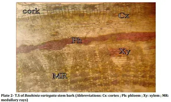 Plate 1: Bark of Bauhinia variegata showing external and internal characteristics[5]