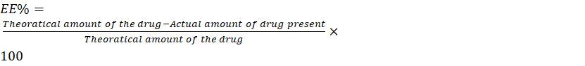 EE%= Theoratical amount of the drug-Actual amount of drug presentTheoratical amount of the drug×100