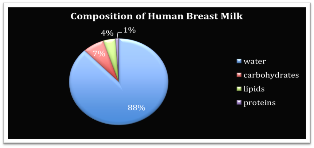 Human breast milk contains vitamins, minerals, digestive enzymes, hormones, and carbohydrates, protein, and fat. It contains a lot of bioactive substance and immune cells such as macrophages. Both bioactive substances derived from proteins and lipids and indigestible molecules derived from proteins, such as oligosaccharides, are present. (WA, 2013). The composition of human breast milk is illustrated in Figure 2.