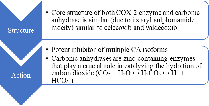 Figure 4: Mechanism of action of tissue specific novel, dual inhibitor of COX-2 and carbonic anhydrase - Polmacoxib 20,21
