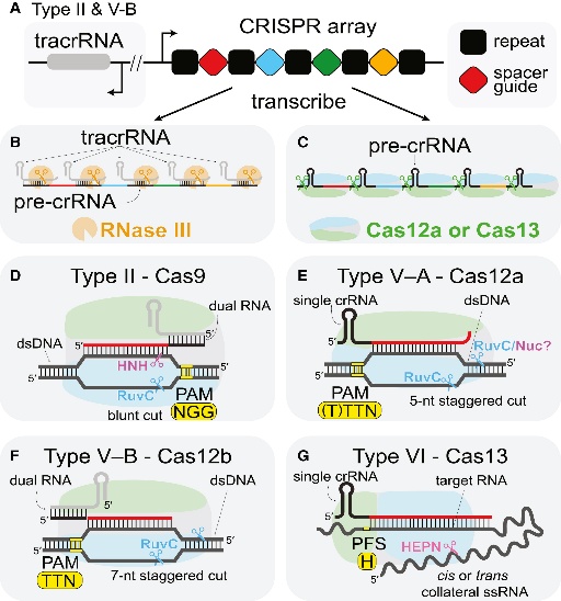 An overview of the CRISPR-associated enzymes that allow different types of editing: