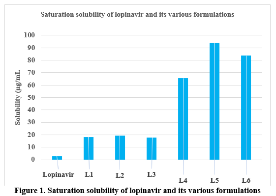 The results of the solubility studies for lopinavir and its co-crystal formulations L1, L2, L3, L4, L5, and L6 are shown in Figure 1.