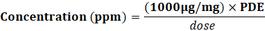 Concentration (ppm)=(1000μg/mg)×PDE?dose