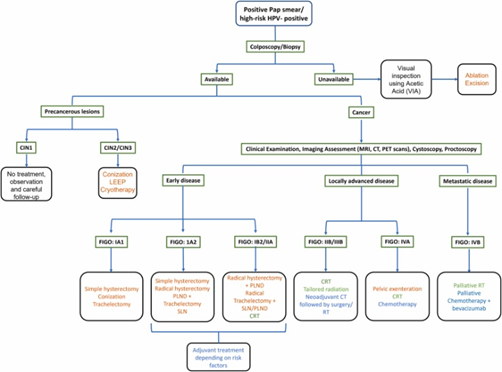 In the management of cervical cancer depends on the stage of the disease, tumor and caracteristices, and patient factors such as age and fertility wishes. Early detection through screening and HPV vaccination has significantly improved outcomes. According to saslow et al. [2020], timely diagnosis plays a crucial role in preventing progression to advance stages6.