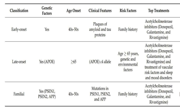 Many hypotheses have been suggested to explain the development of Alzheimer’s disease, but a single, comprehensive theory has not yet been established, likely because of the disease’s complexity. AD is generally classified into two main types: familial, which represents 1–5% of cases, and sporadic, which accounts for over 95% of cases. (21)