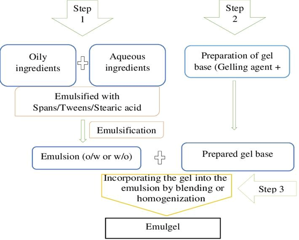 Topical drug treatment has been used for a long time to help with different skin and beauty problems. Many active ingredients, like anti-inflammatory, antibacterial, antifungal, antiviral, anti-acne, and skin-softening substances, can be put directly on the skin. One big advantage of applying drugs this way is that they work only on the affected area and don’t pass through the liver first, which can be harmful. However, for the medicine to work properly, it needs to go through various layers of the skin to reach where it’s needed. Traditional forms like creams, gels, and ointments have some problems, such as being greasy, not spreading easily, and not staying stable for long. Emulgels have become a good alternative. They mix the qualities of both emulsions and gels, making it easier to deliver both water-soluble and oil-based medicines. Emulgels offer better stability, easier spreading, controlled release of the medicine, and are more convenient for patients, making them a better choice for applying drugs to the skin and treating different skin conditions.
