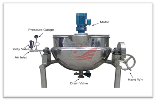 A steam jacket is frequently used in kettles to heat food and agriculture at a uniform temperature[13]. Product for treatment temperature. In the process of evaporation, there is a heat transfer mechanism that facilitates thermal transfer between the two processes. Heat the extract. The aqueous substance is evaporated by an evaporating pan, which is heated by converting steam into heat. A rise in temperature leads to a decrease in the solvent molecule's ability to escape as more vapour is present. Surging causes solvent molecules to evaporate more readily. The apparatus comprises a casing filled with an evaporative substance, where steam enters through the inlet and condensate exits the outlet, which heats up the material[20]. Mechanical stirring is used for larger quantities, while manual stirring applies to smaller quantities.