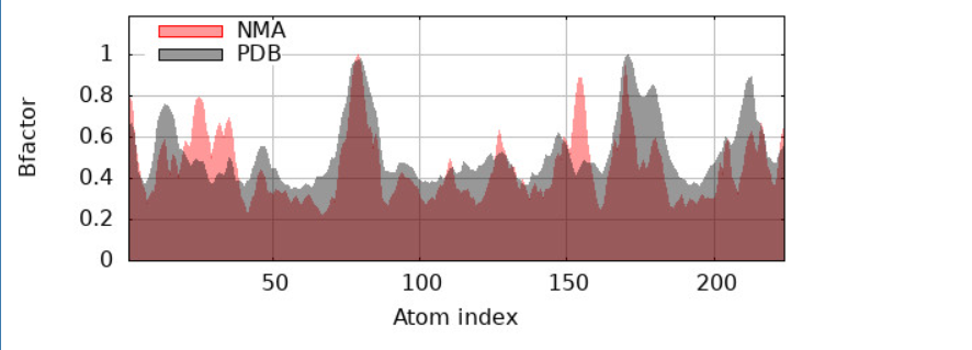 Figure 9: Comparison of B-Factor Profiles from Normal Mode Analysis (NMA) and PDB Data across Protein Atom Indices