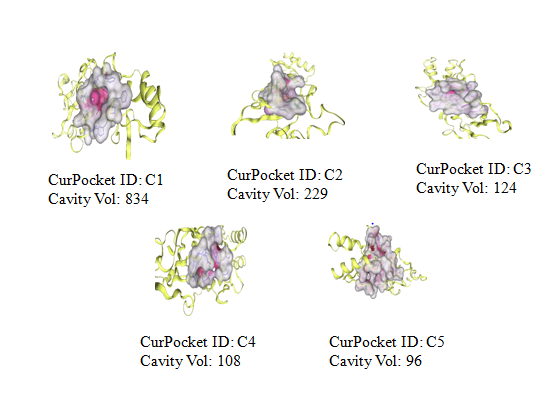 Figure 5: Structural Analysis of Binding Cavities with CurPocket IDs and Their Respective Volumes