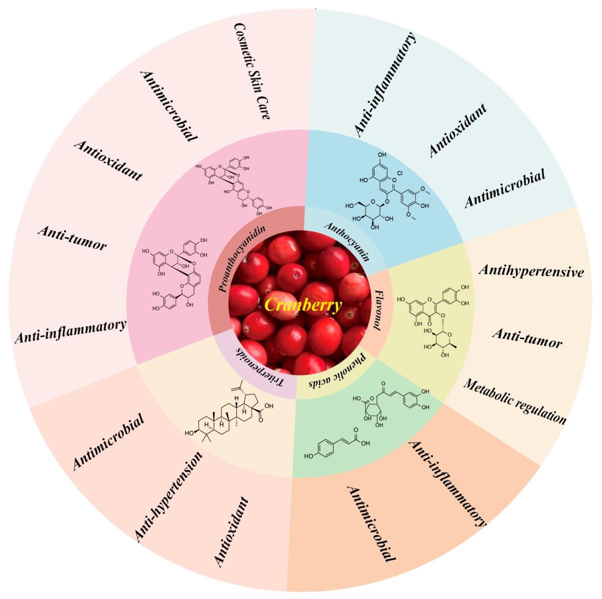 To date, A large number of studies have focused on the analysis of the chemical composition of Cranberry, thus validating its pharmacological effects . However, the current explo Ration of the pharmacological effects of cranberry is still shallow, and further in-depth Studies on its pharmacological effects and its mechanism of action are urgently needed.